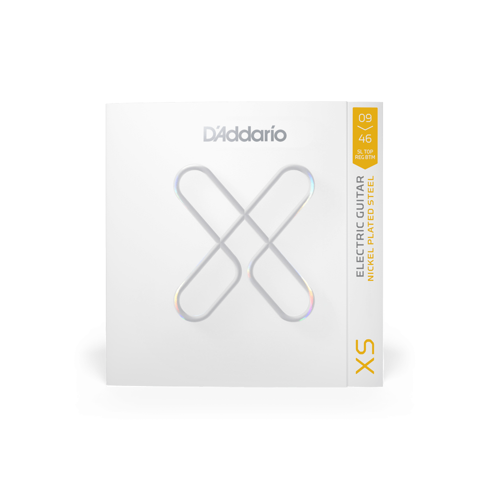 XS Nickel coated electric guitar strings provide the longest life of any D’Addario electric guitar string. Coated with our groundbreaking XS coating, these premium electric strings attain maximum life and a smooth, fast feel without dampening their outstanding tone. Constructed with a NY Steel core, reformulated nickel-plated steel wrap wire, and Fusion Twist technology, XS Nickel strings boast superior strength and tuning stability, plus richer harmonics, greater clarity, and remarkable definition with every sweep, slide, and bend. This 09-46 Super Light Top/Reg Bottom gauge set has more low-end tone than Super Light, while staying flexible for bends.