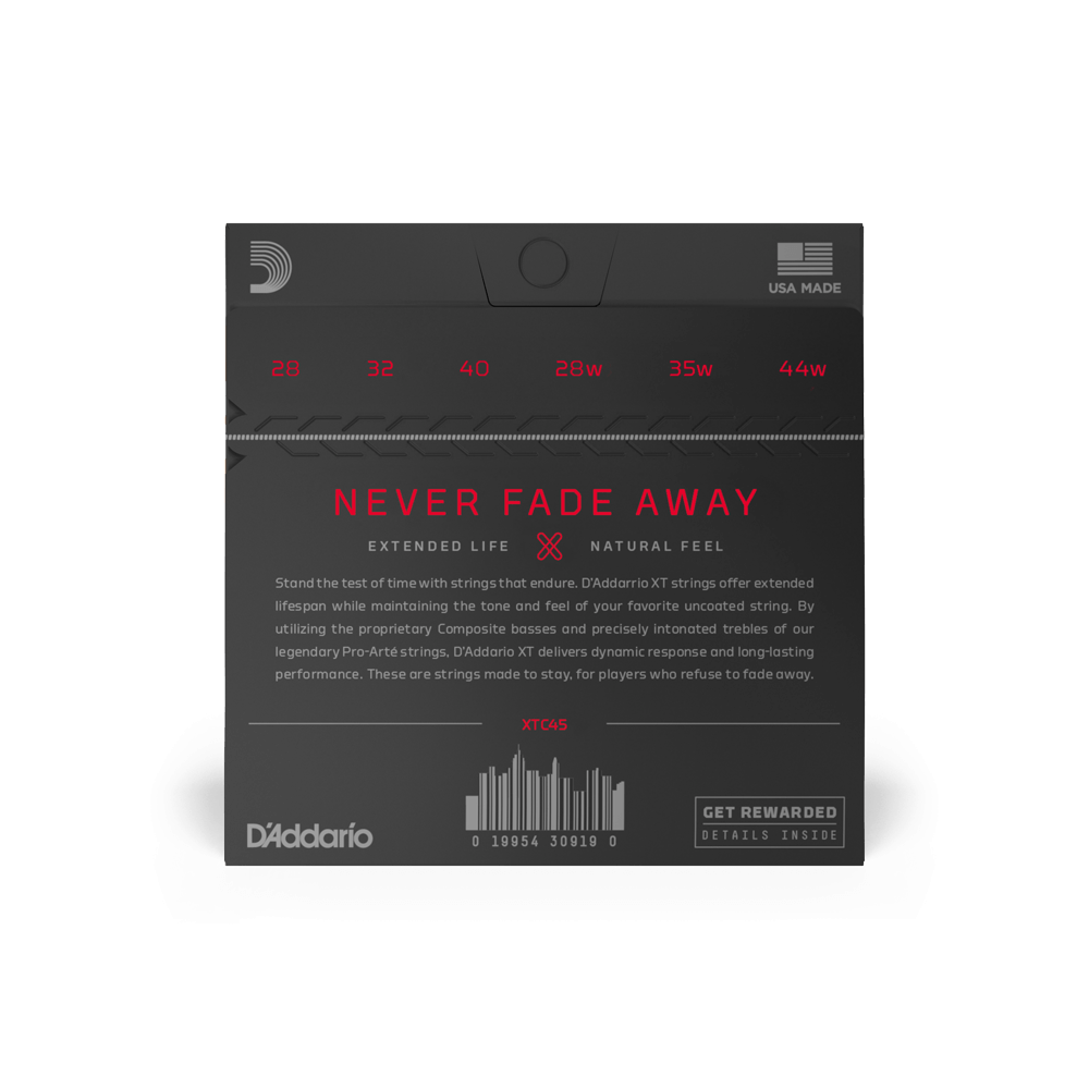 XT are our longest lasting classical strings, combining centuries of D’Addario expertise with modern coating technology. XT Classical features our composite basses, constructed with a long-lasting multifilament core, wrapped with silver-plated copper, and finished with our proprietary XT coating, for bold, projecting tone and extended life span. They’re complimented with our precision Pro-Arté nylon treble strings which provide the warm, mellow charm traditionalists love. This Normal Tension set is our best-selling tension, preferred for its balance of rich tone, comfortable feel, and dynamic projection.