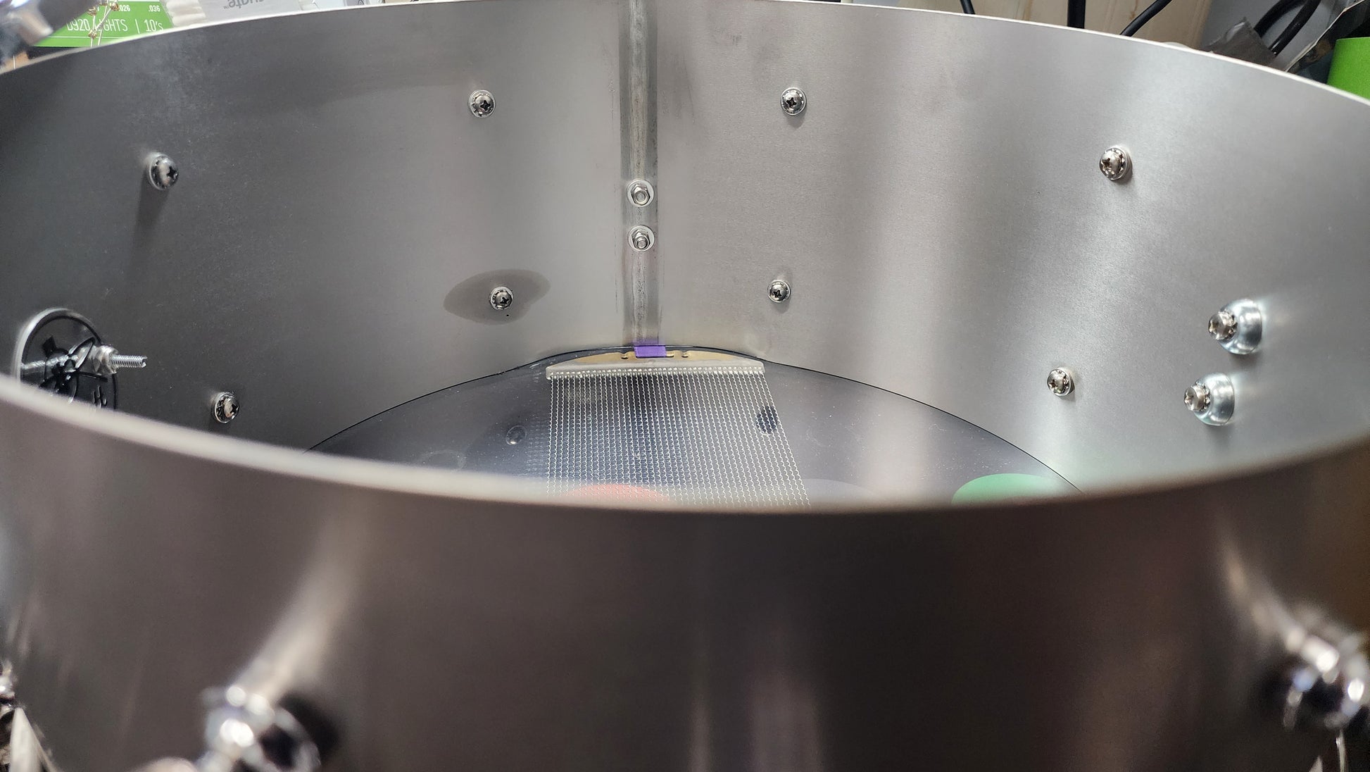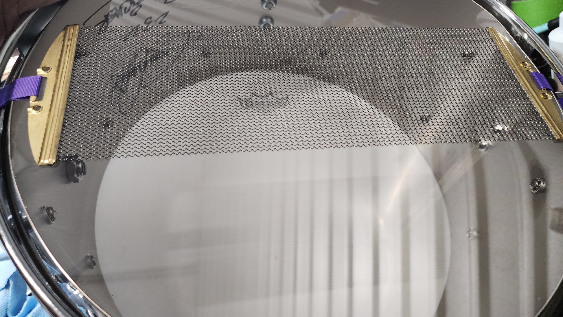 Up for grabs is one of the top snares in the world!! Dunnett titanium is the world's first Titanium snare and has earned numerous awards due to its incredible sound and handcrafted construction. If you're serious about leveling up on your snare...this is it! This snare has a unique pre-EQ'd sound that can cut right thru screaming guitars, but it can also compliment a light jazz ensemble. Pretty much has an amazing range of dynamics.. which is not the case with most snares. This snare truly sounds incredible in the low-mid tuning and high tunings. The snare does have a few finger marks and some light patina that has developed over time and use, which makes each Dunnett raw titanium snare unique. The shell can totally be cleaned if desired, afterall, its titanium......but many, like me, prefer the the raw patina look that can only be produced with time.