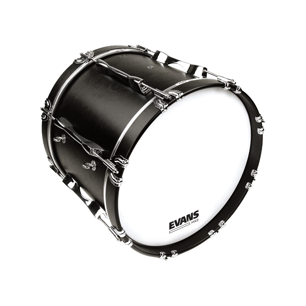 EVANS MX2 Black Marching bass drumheads produce a bright, focused, and full tone. The MX series contains 2-plies of 7.5mil film and a unique tone damping system that can be manipulated by applying the included felt arcs to enhance articulation and focus low end for both indoor and outdoor marching.