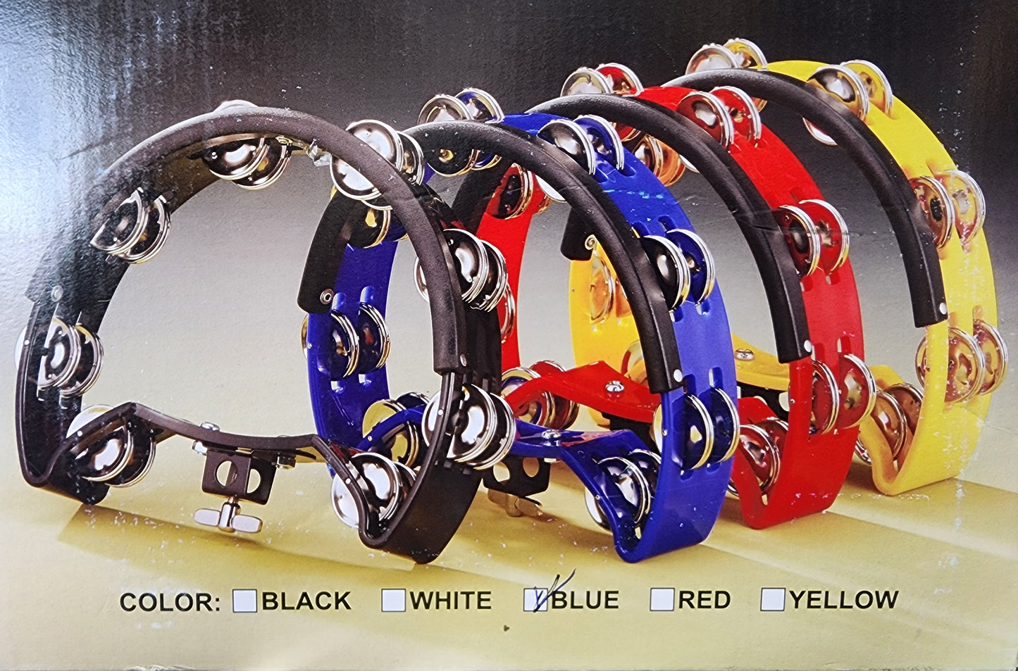 Pandereta de dos hileras con 32 platillos tintineantes, color azul