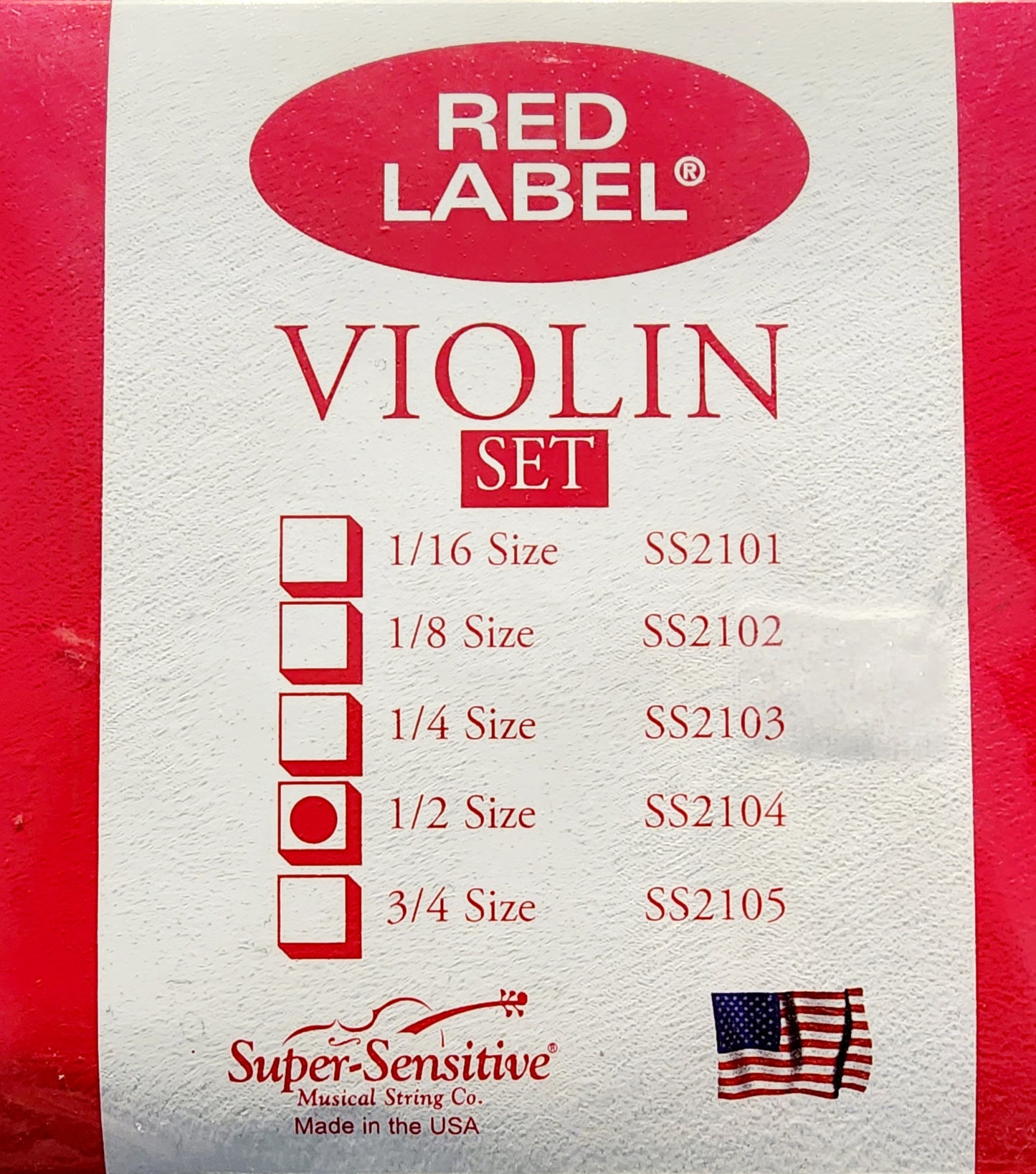 Juego de cuerdas para violín Red Label, tamaño 1/2" SS2104