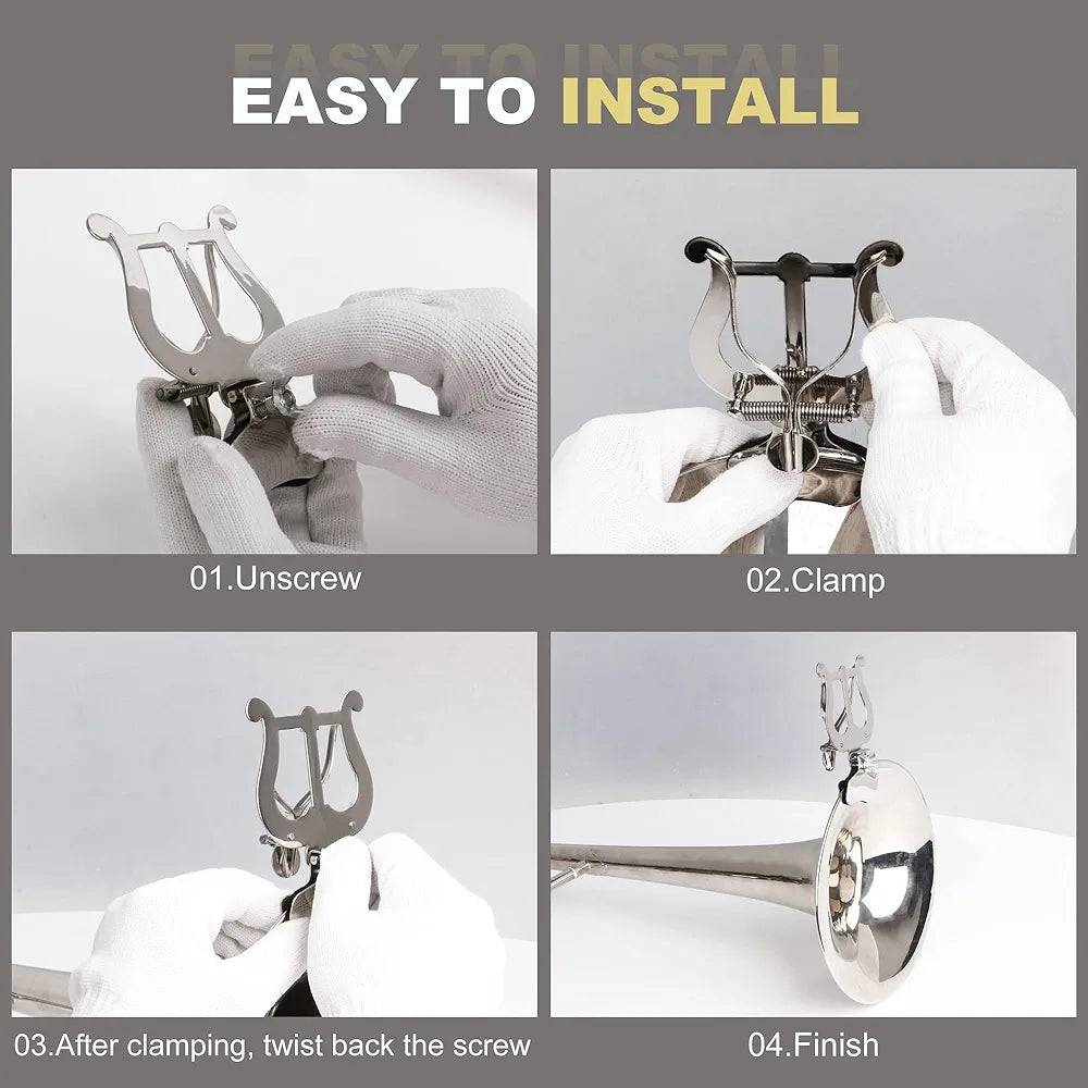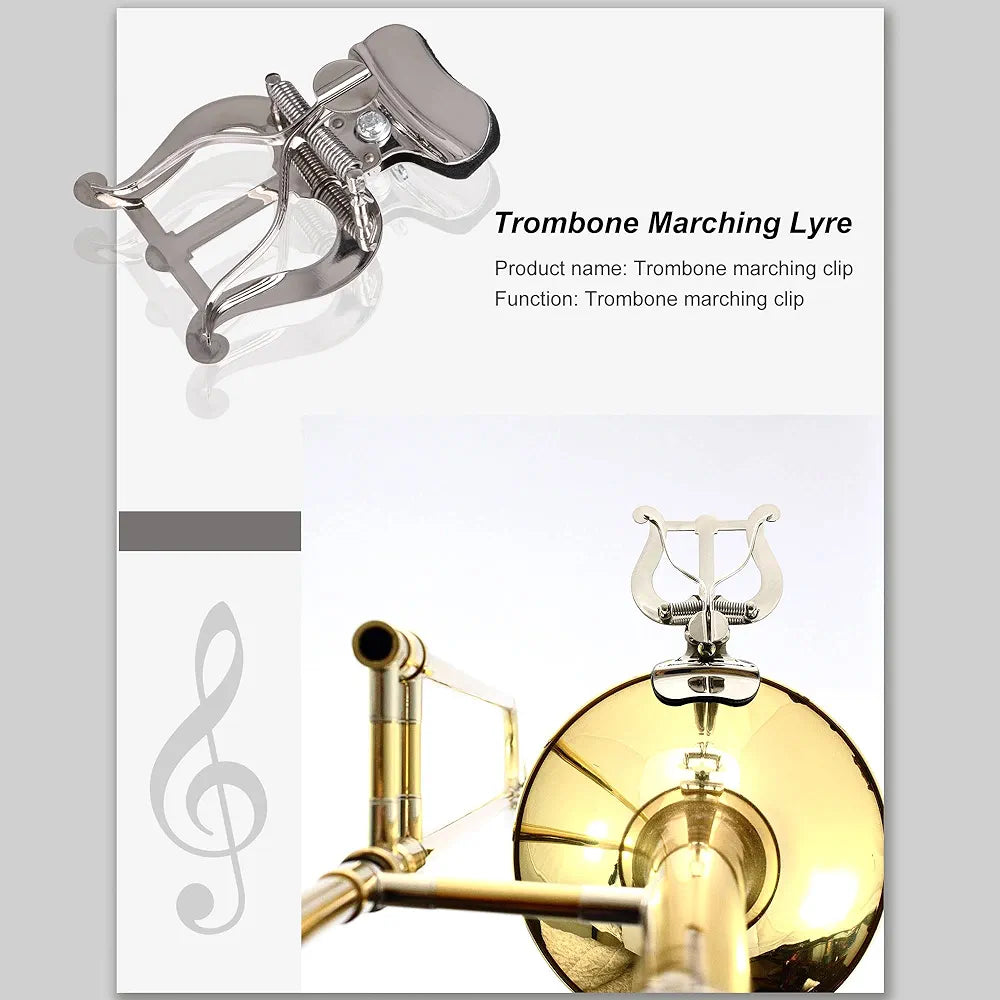Trombón/trompeta/corno francés/barítono/lira de marcha plateada Xstyle con abrazadera. Incluye funda de almacenamiento blanda GRATIS