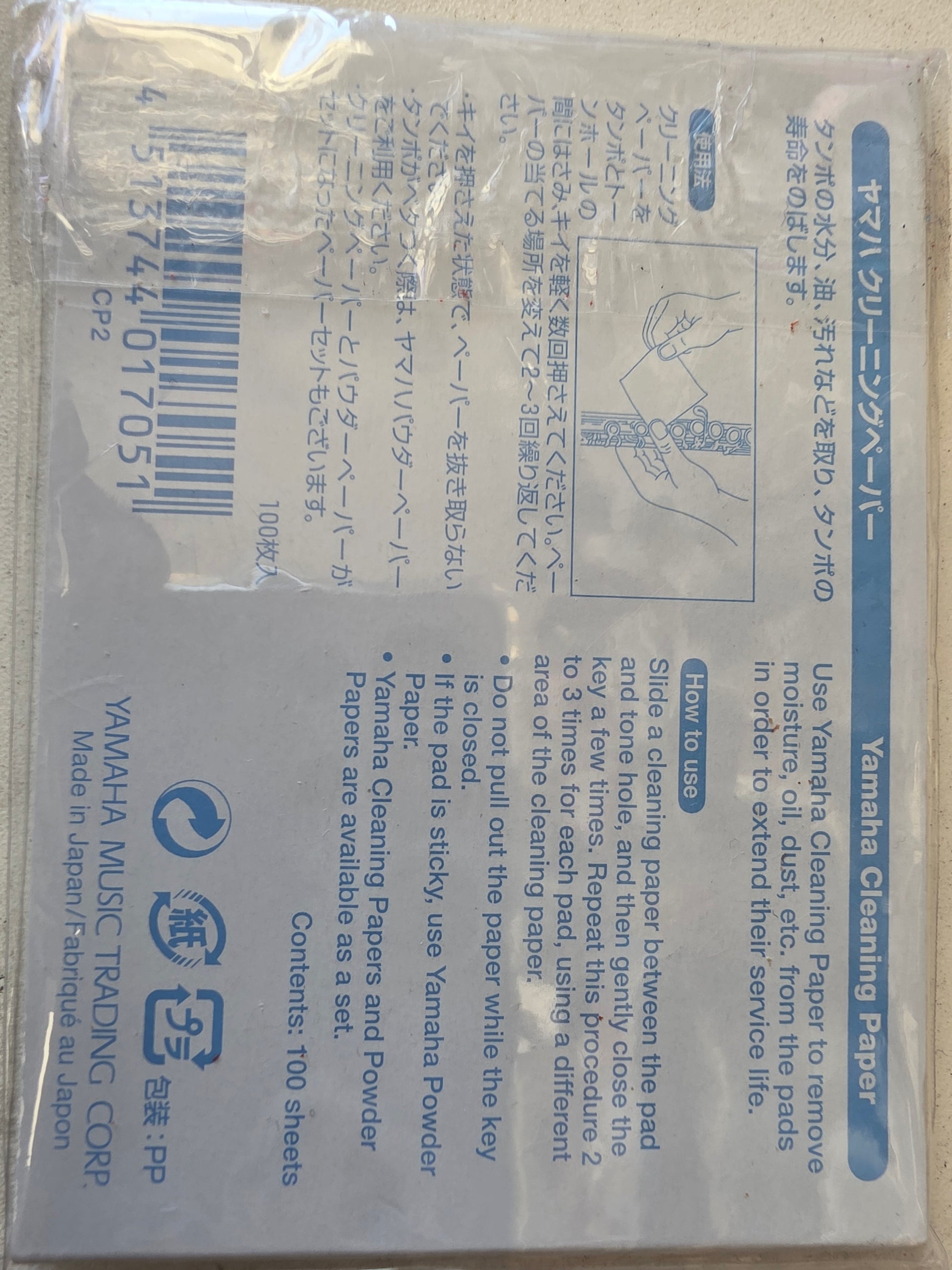 Yamaha YAC 1113P Woodwind Pad Cleaning Paper - 100 Pack