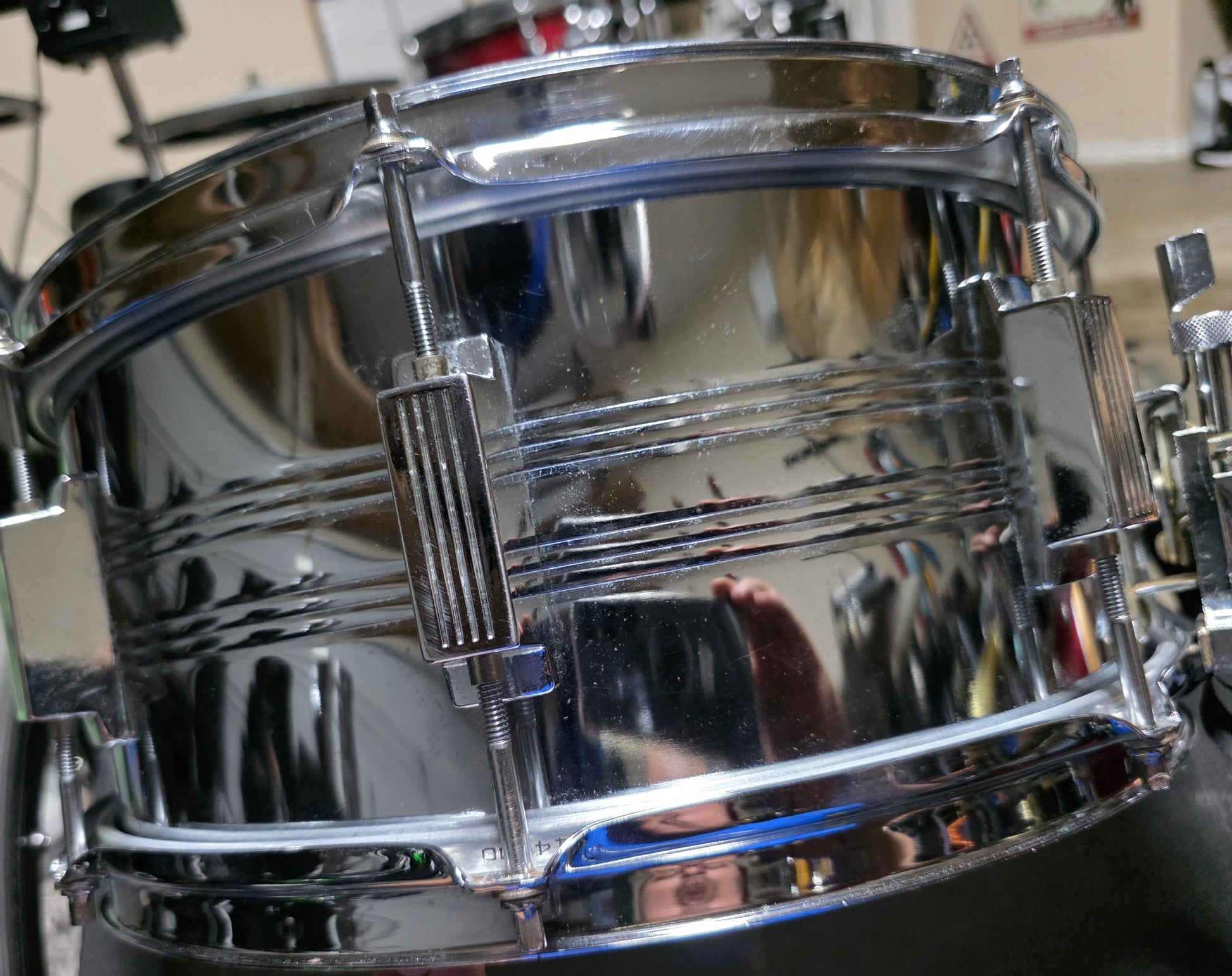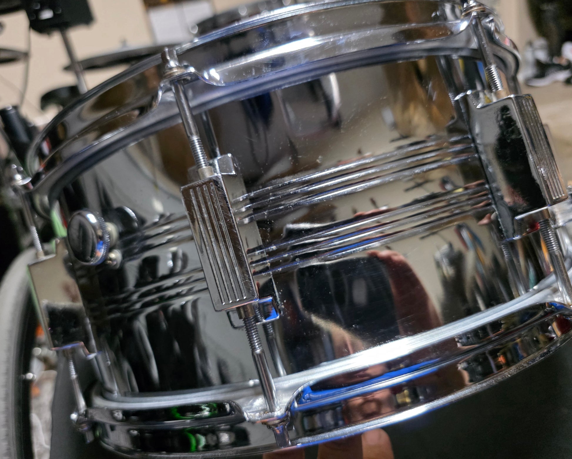 What do we have heaaa?! A super nice vintage Tama 1989 Rockstar RS106 6.5x14 Steel Snare Drum, made in Japan! Featuring 8x Sure-Lugs, triple flange hoops, and a beautiful fully functional internal muffler system. The drum is in great condition, but it does have minor blemishes here and there (see pics). It comes with a Coated Ambassador and a Snare side Ambassador both with the Tama logo that I took off my Tama Star bubinga ;) They don't make Rockstars like this anymore...but you can stop dreaming and get this one! Why am I selling it? Cuz I have 2! So this one has to go to a happy drummer in his happy home. Check out the video so you can hear the one I kept, they're identical. Btw, not all Rockstars came with internal muffler systems, which makes this a pretty rare drun....also, they're they are so convenient....not sure why manufacturers stopped putting them on snares..I guess if it makes sense..change it?!