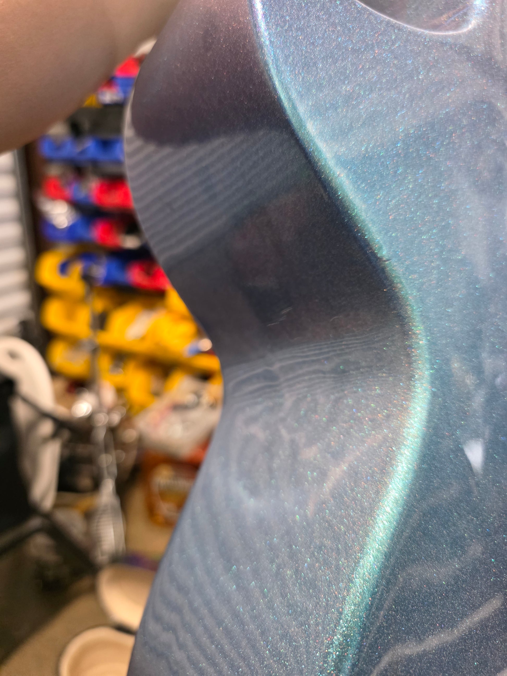 (Tex-Mex Bajo Quinto in light blue sparkle, Cedar wood. (Small blemishes = Big discount!!)